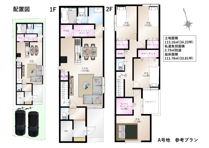 A号地:価格未定/113.16㎡/34.23坪