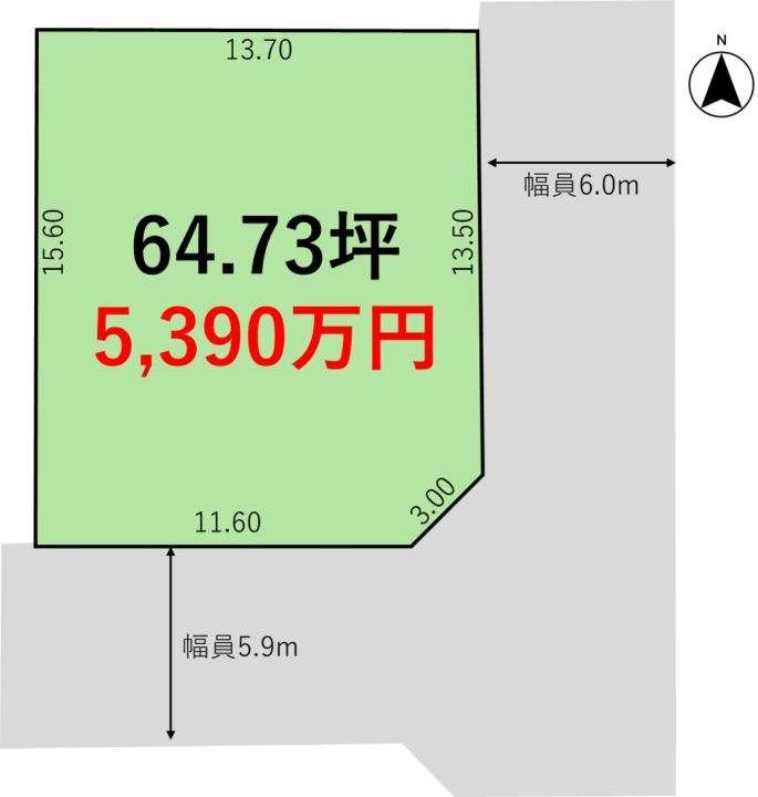 解体更地渡し!広々5.8m~7.1mの接道で開放感あふれる